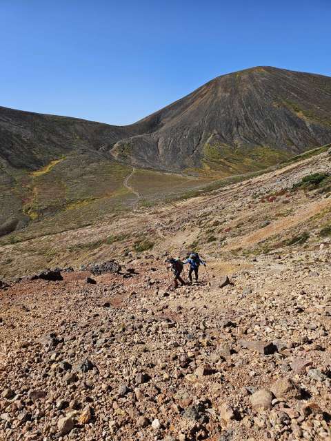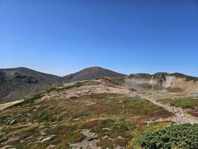 We made it to the summit. Enjoyed our summit drinks and envied other hikes snacking on Jo’s favorite, inari. We didn’t have a nailed down plan when we got up there, but given how good we felt, we decided to continue the trek to do a loop back down to the station. After a steep descent off the crater, we continued along the ridge hitting a few more peaks. It was a beautiful hike, with awesome views of craters and Japanese tundra, some of which had started to turn autumn colors.