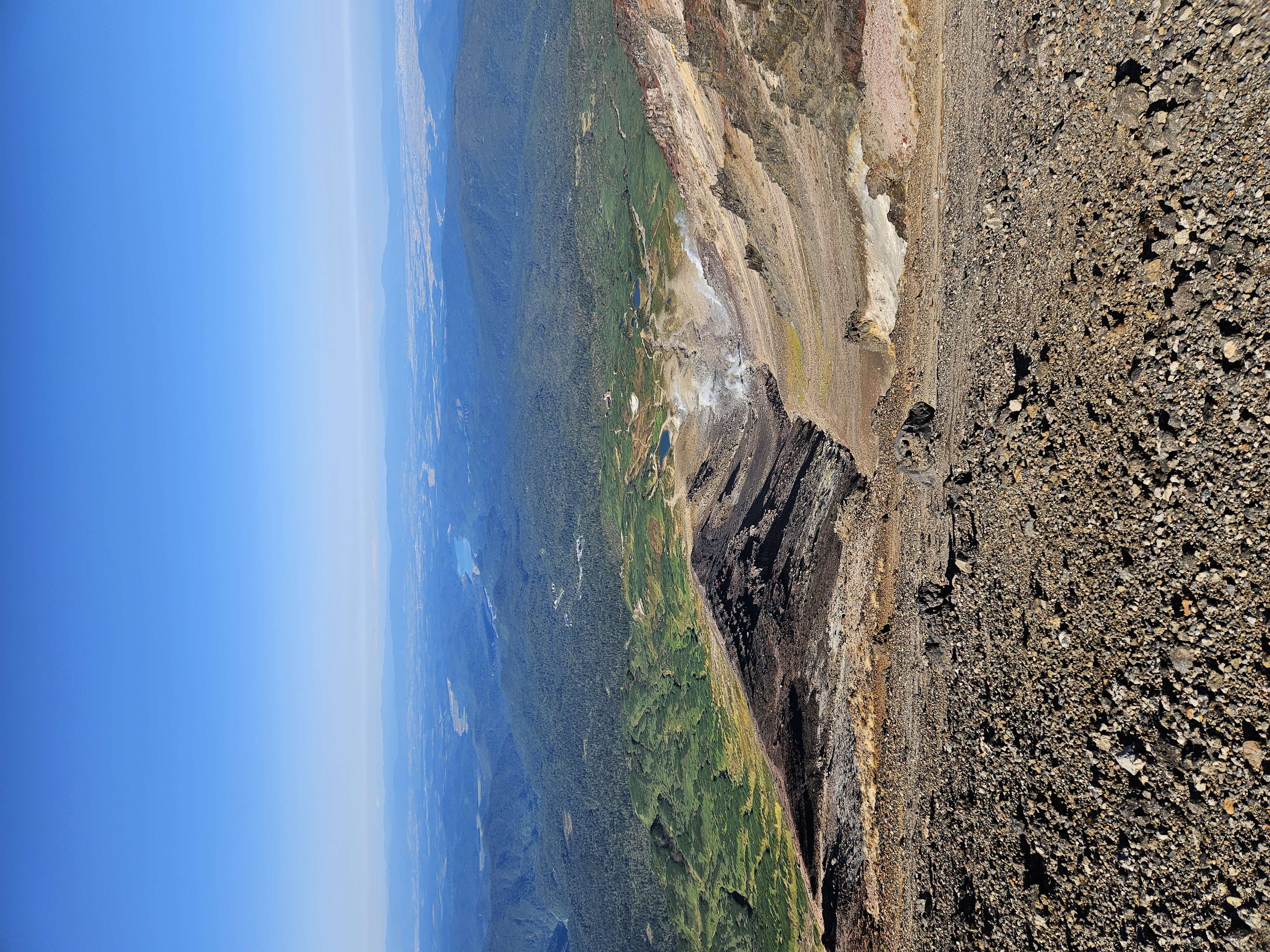We slept in the nearest town we could and got to the base first thing in the morning. I can’t remember how much we paid for the gondola but it was a nice luxury to have gain some easy elevation. It’s a straight shot to the summit from the gondola station, we joined the train of other tourists, put our heads down and marched our way up there. It was cool to see the steam from the thermal vents on the way up. The whole national park, and region in general are all volcanic: steamy vents, hot springs, hot pots.