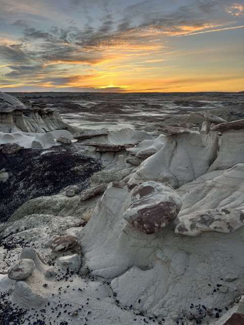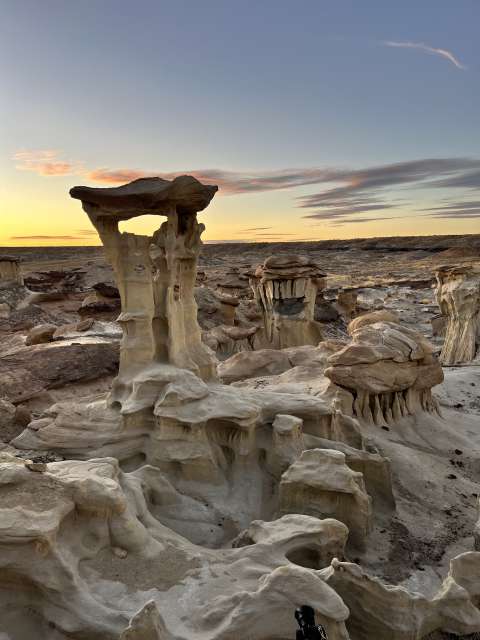 We spent the weekend hiking around the ruins in Chaco Canyon, and then we explored the nearby Bisti Badlands. We hiked the Alien Throne for sunset, the King of Wings for sunrise, and wandered around the Bisti Badlands Trail for a few hours looking for petrified wood, etc.