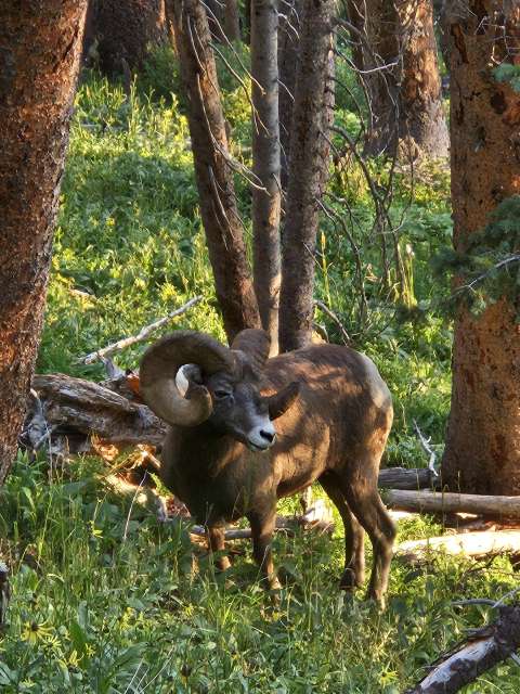 The way down I stumbled on some bighorn sheep in the forest. Never seen them below treeline before.
