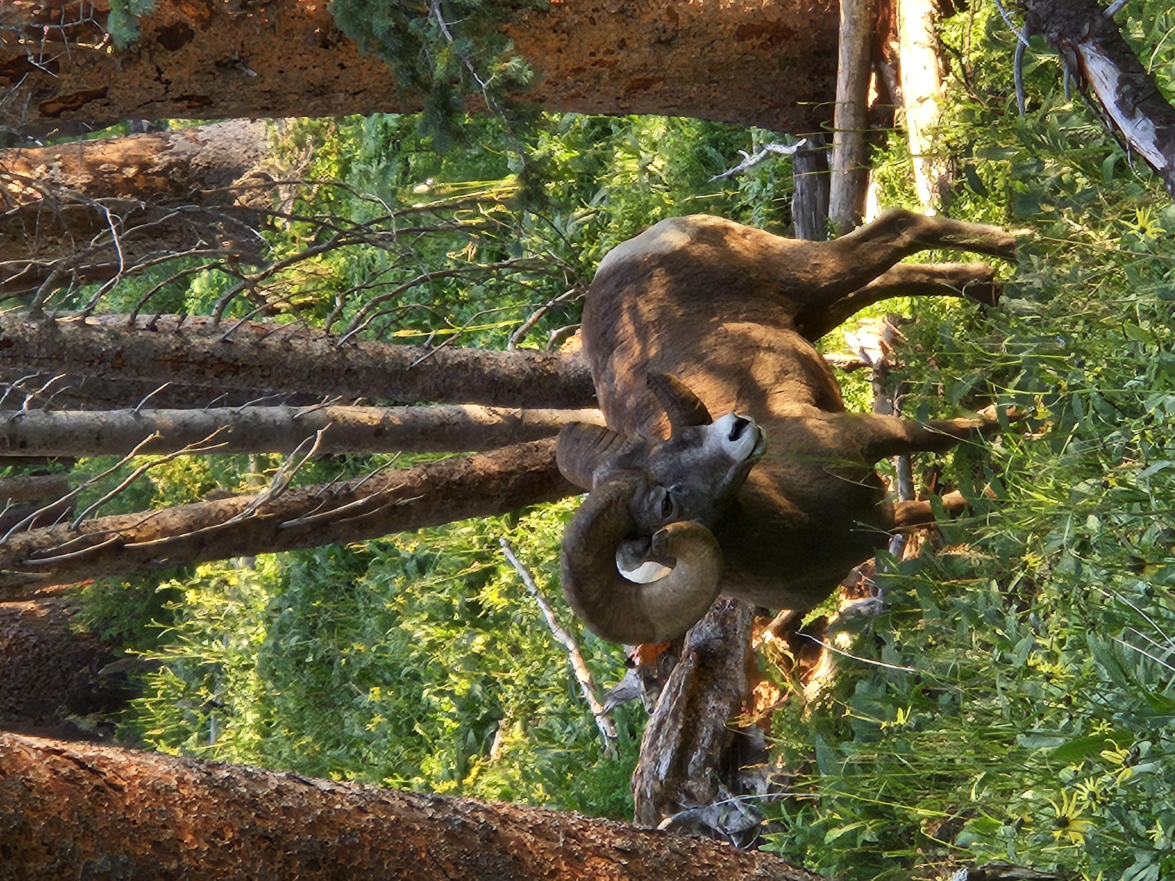 The way down I stumbled on some bighorn sheep in the forest. Never seen them below treeline before.
