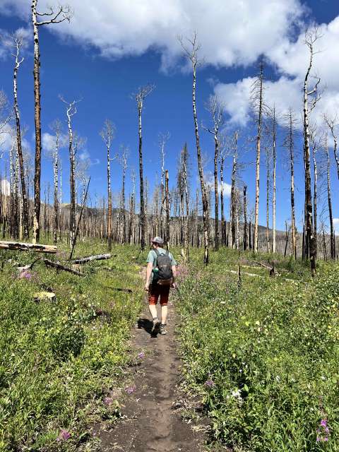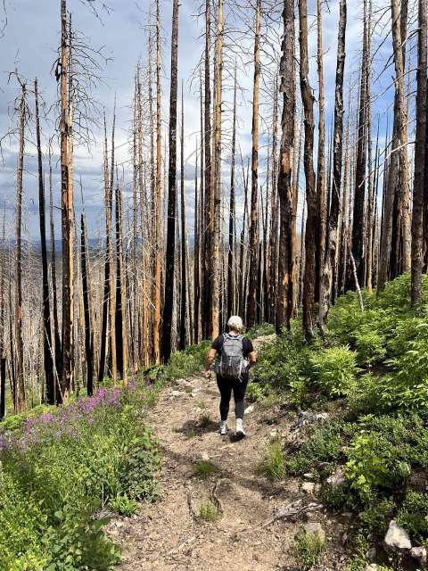 Starting from the “backside” of the Pecos on some logging road we were able to get within 5 or so miles of the peak. A fire ripped through here a few years back. The elevation gain didn’t feel too bad given the distance but we were feeling it. I opted to snag the southern peak as well (only 250 feet or so prominent and more or less on the route). I met Jo back on the trail and continued to the summit.