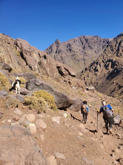 As mentioned before, we just kinda hoped that the booking for our tour was legit. Sure enough though, the morning of our trek, a driver showed up at our riad ready to drive us the hour or so to Imlil where we were to meet our guide and start the trek. Once there, we paid for our guide, cook, donkey, and supplies for the trip. It cost €305 for the both of us (after the tip). We were told to relax and enjoy some tea while we waited for our guide.
