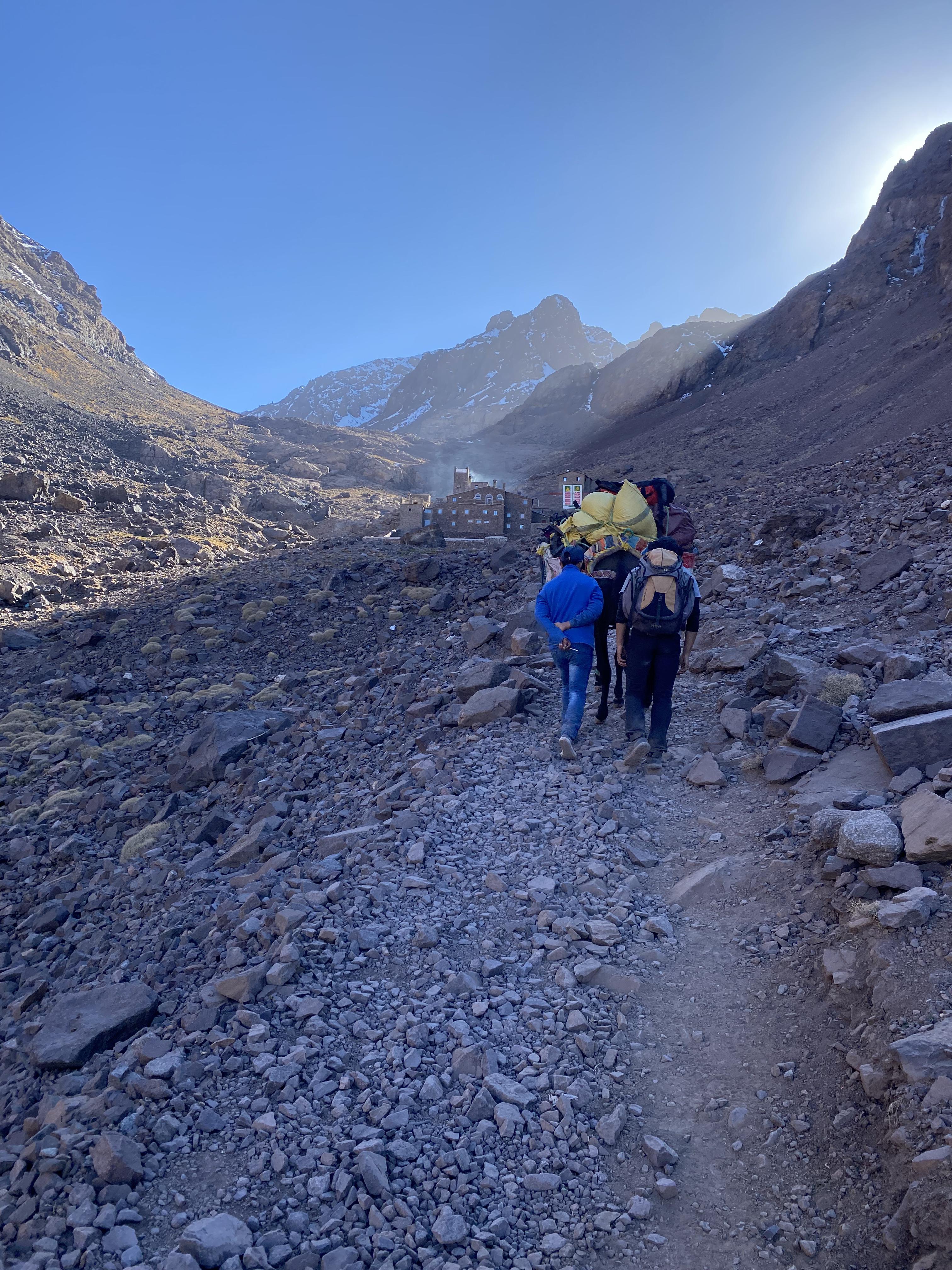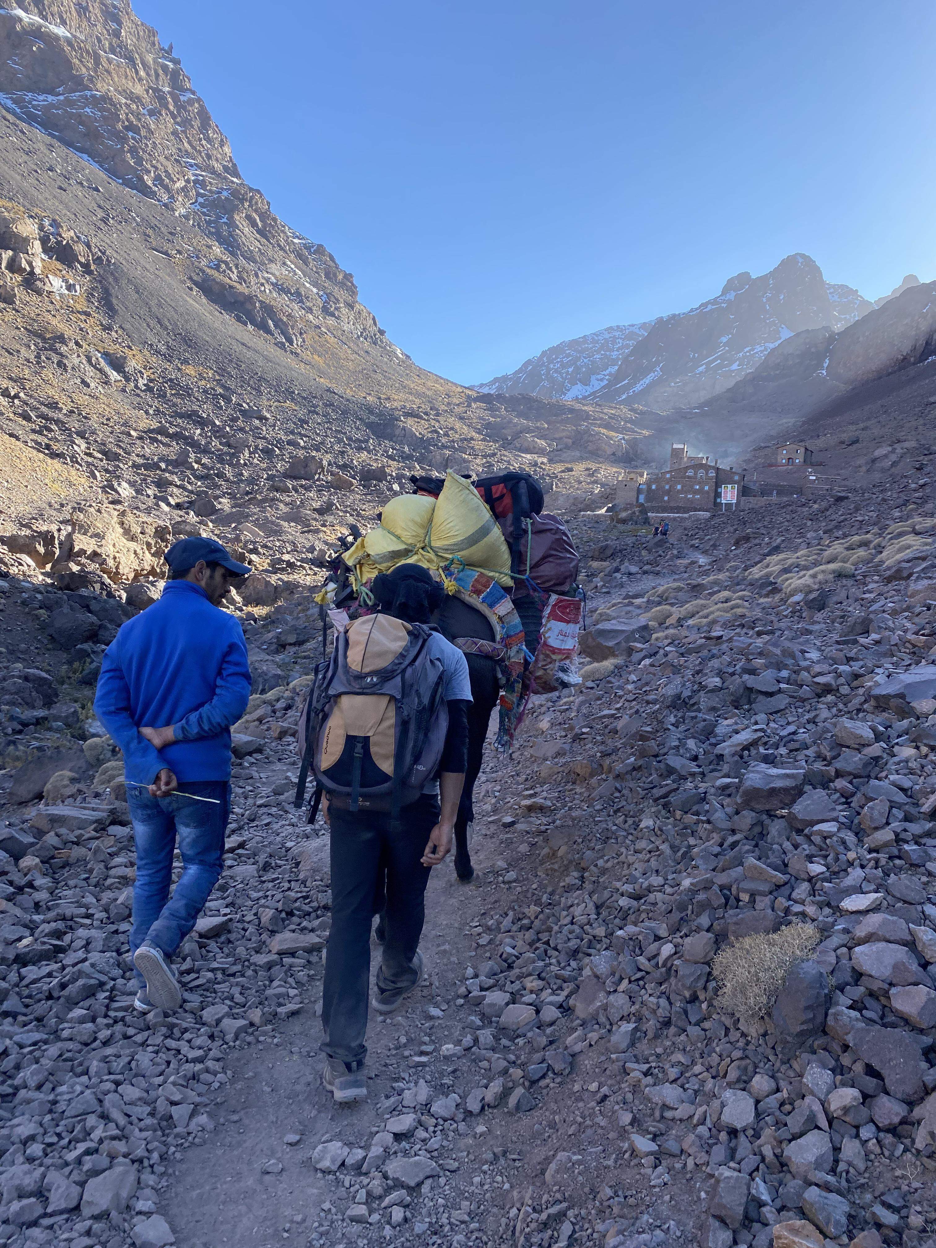 As mentioned before, we just kinda hoped that the booking for our tour was legit. Sure enough though, the morning of our trek, a driver showed up at our riad ready to drive us the hour or so to Imlil where we were to meet our guide and start the trek. Once there, we paid for our guide, cook, donkey, and supplies for the trip. It cost €305 for the both of us (after the tip). We were told to relax and enjoy some tea while we waited for our guide.