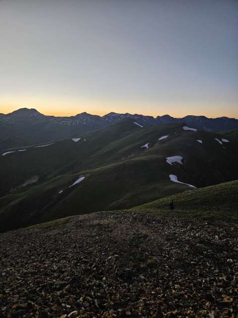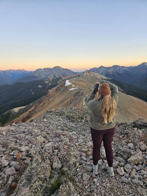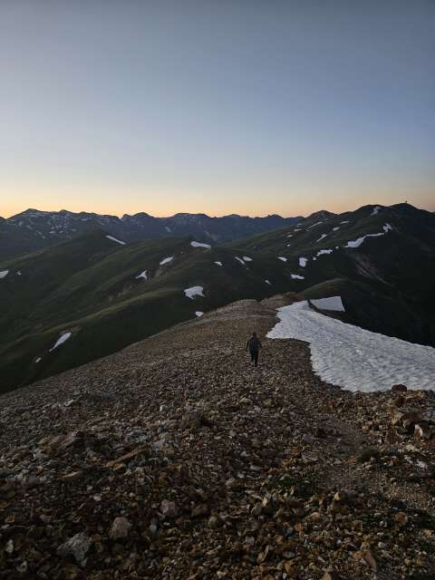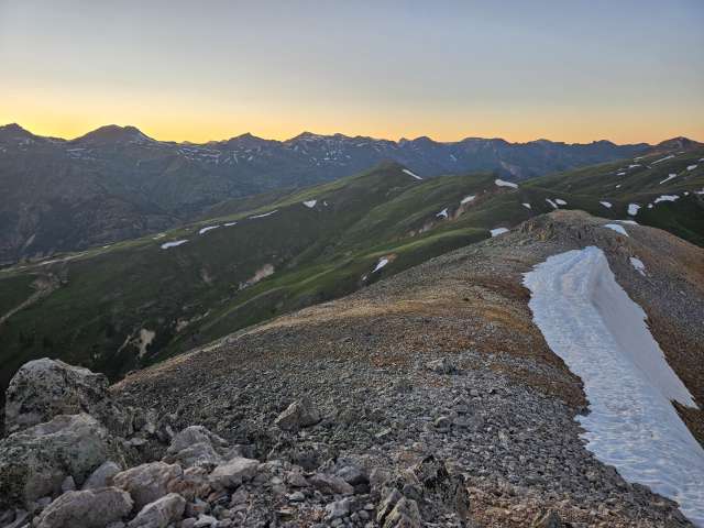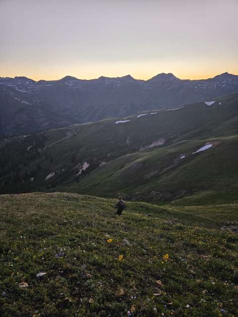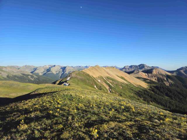 The conditions were awesome. The wild sunflowers were out. The entire hike was above treeline in the alpine which is my favorite. I frolicked down from US Basin and met Jo at the saddle below Ohio where an old miners hut was located. Together we climbed the rest of the way to the summit as the sun was going down.