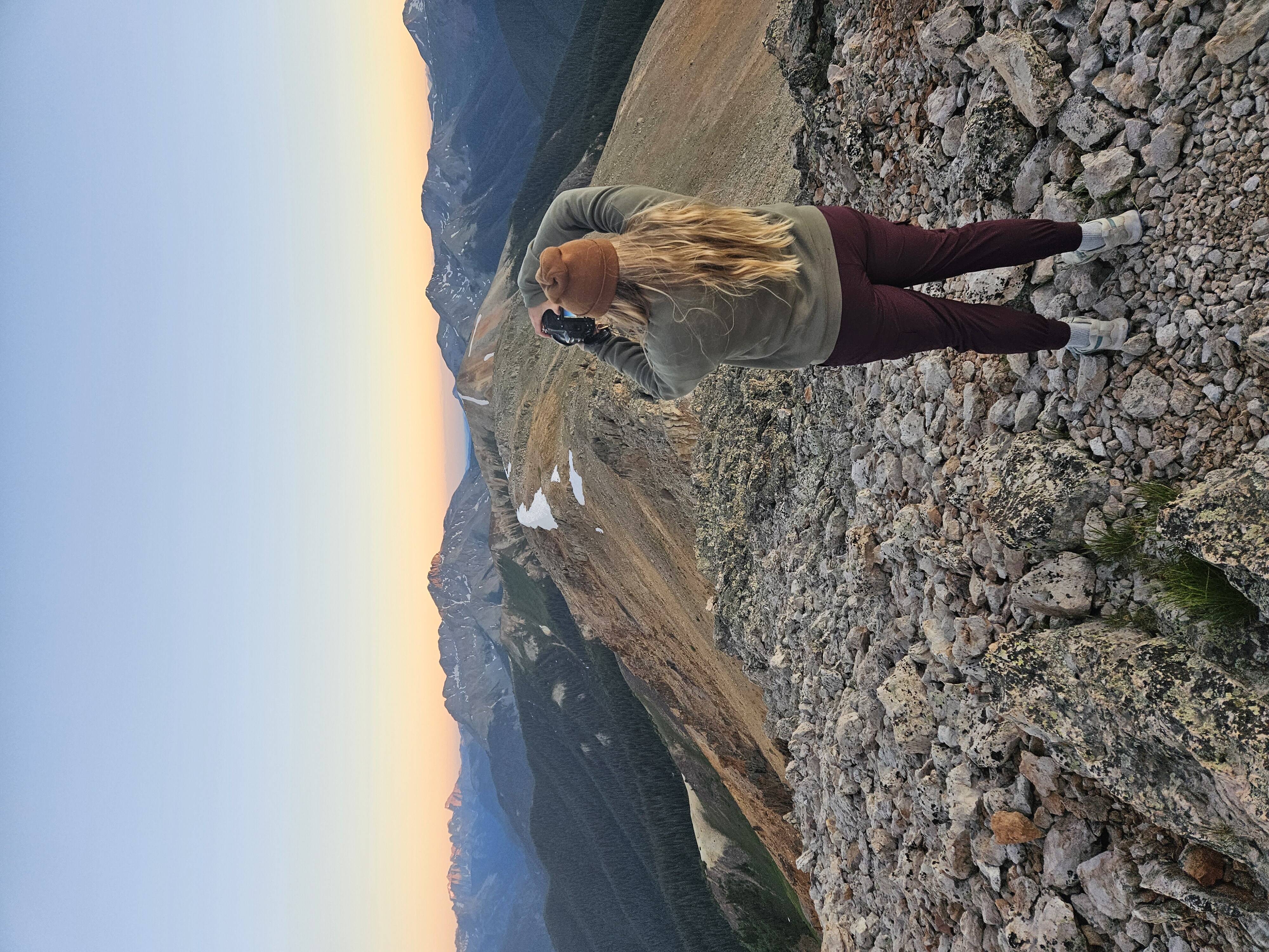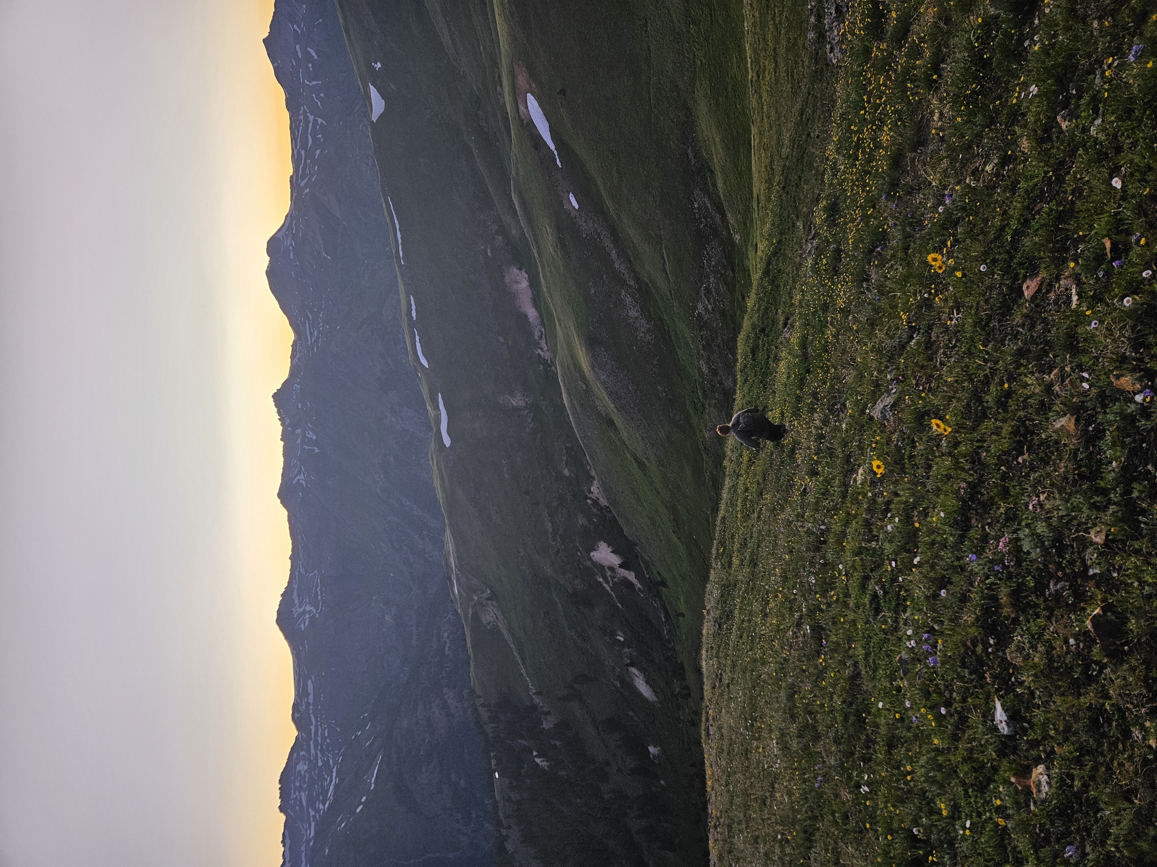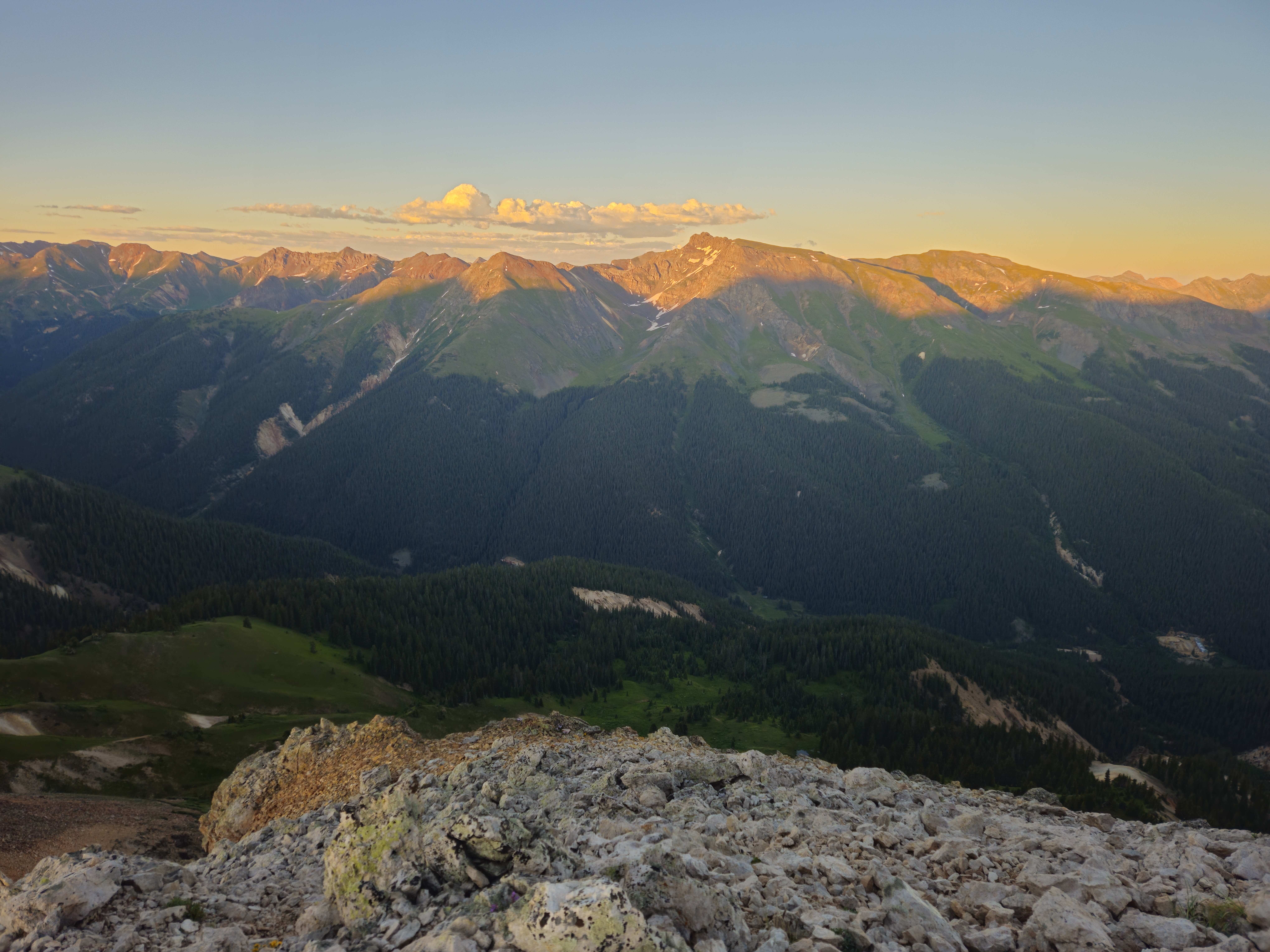 The conditions were awesome. The wild sunflowers were out. The entire hike was above treeline in the alpine which is my favorite. I frolicked down from US Basin and met Jo at the saddle below Ohio where an old miners hut was located. Together we climbed the rest of the way to the summit as the sun was going down.