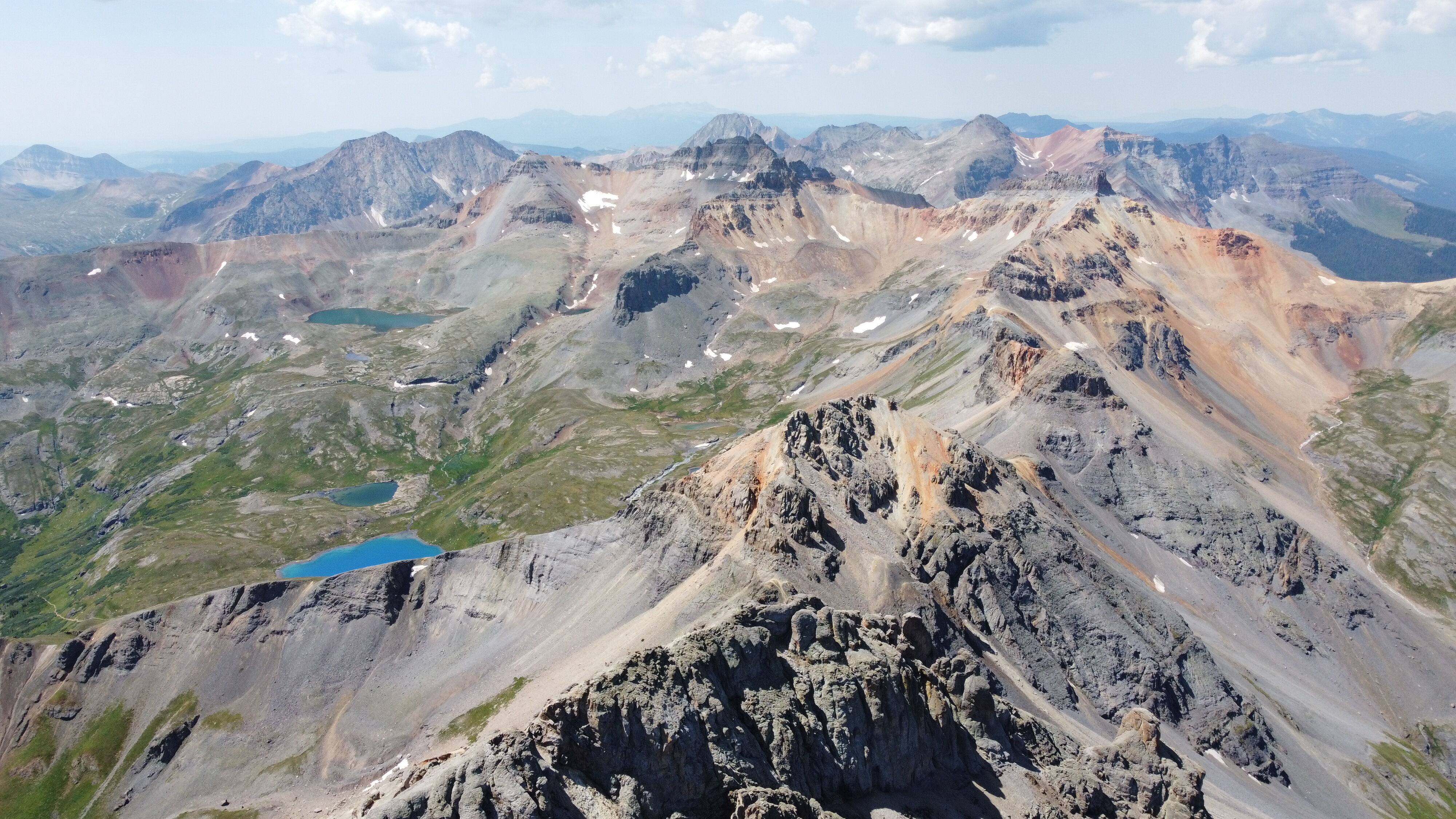 The next morning we hiked to the other side of the lake then straight up the steep gully to the saddle. The last scramble involved some pretty sketchy low class 5 climbing. We were alone at the top and flew the drone again.