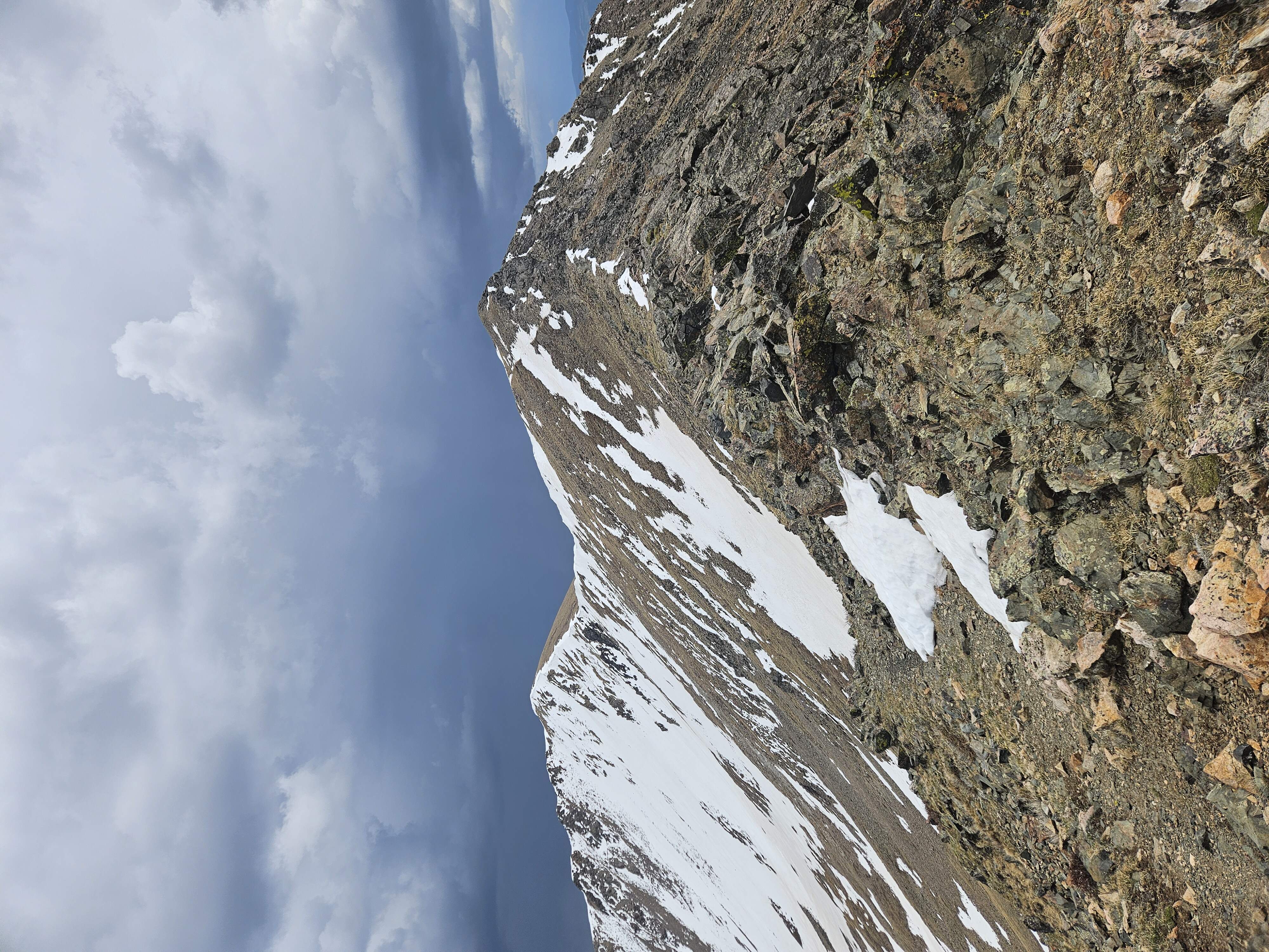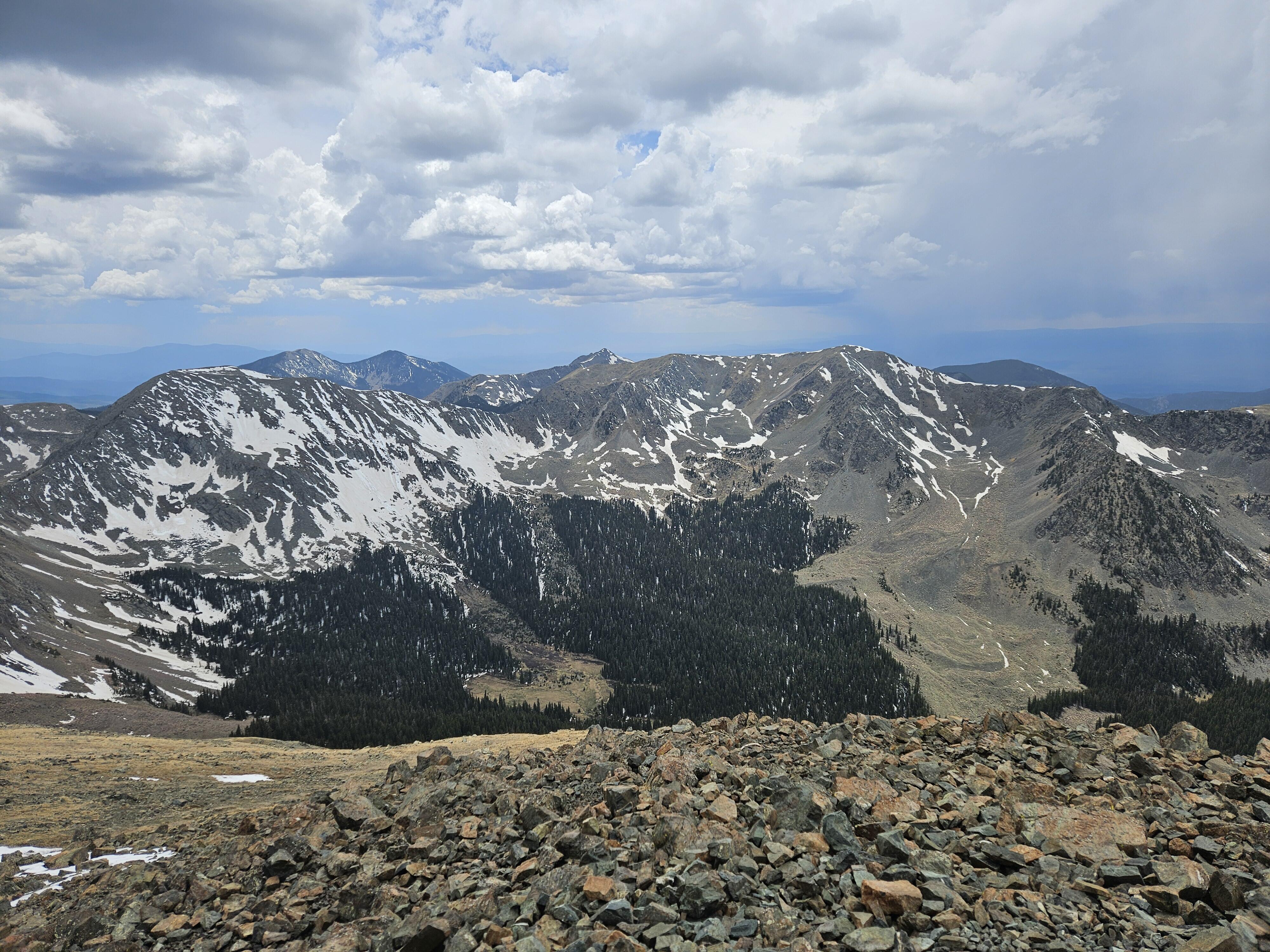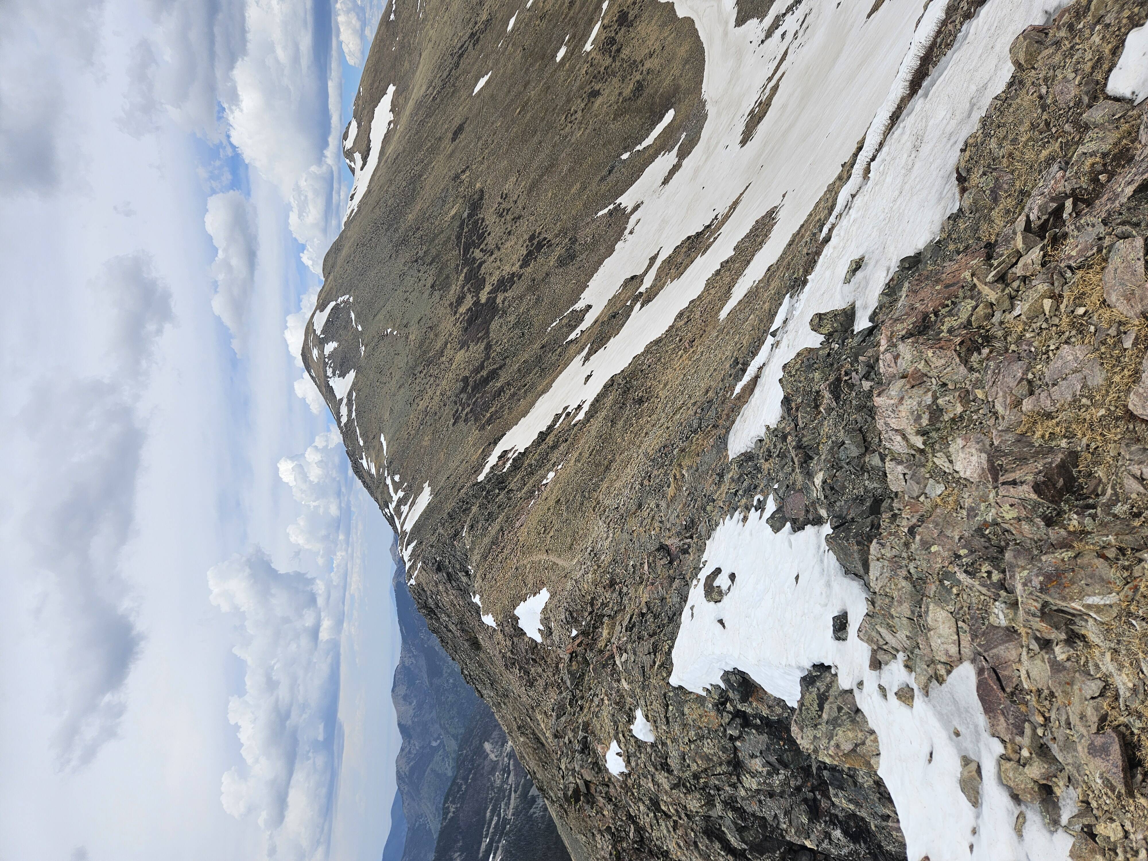 Wheeler is a breeze compared to any other peaks in the Sangre De Cristo mountains. Everything else is like 12+ miles. Anyway, getting to the lake was easy and I wanted to head to up to the peak. I had originally played with the idea of trying to get to Lake Fork Peak from that basin, but upon getting up there it looked to be still too covered in snow (we were on the north side). So I convinced the two girls to join me, at least until lunch 1000 feet or so below the summit. After lunch, I left them and continued to the summit.